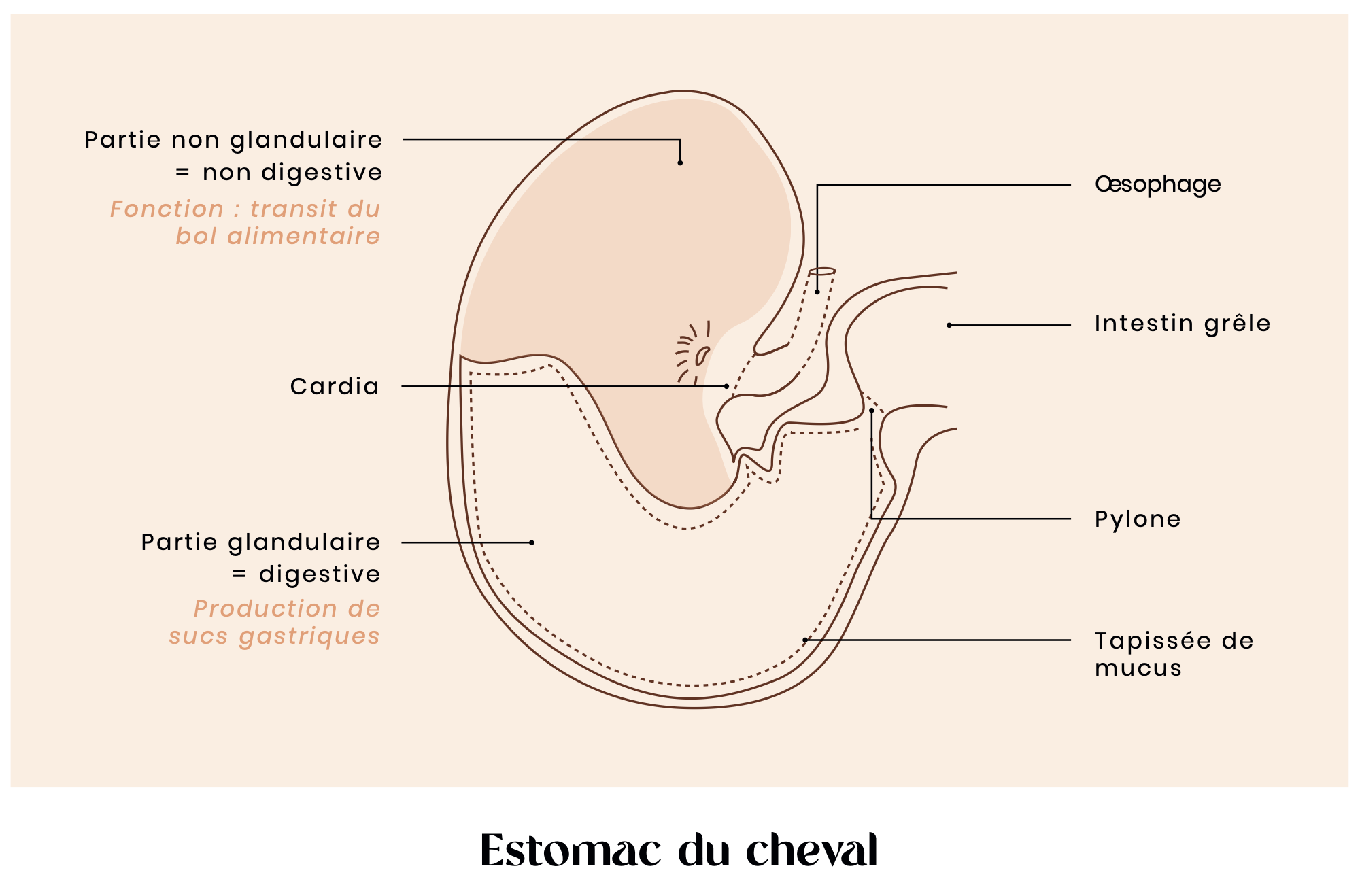 Un estomac vide trop longtemps, ou un estomac trop acidifié (pic de stress) va créer des « plaies » sur les parois de l’estomac (sur la muqueuse). La répétition et la non-prise en charge pourra aller jusqu’à générer des ulcères et devra alors être traitée avec le vétérinaire.