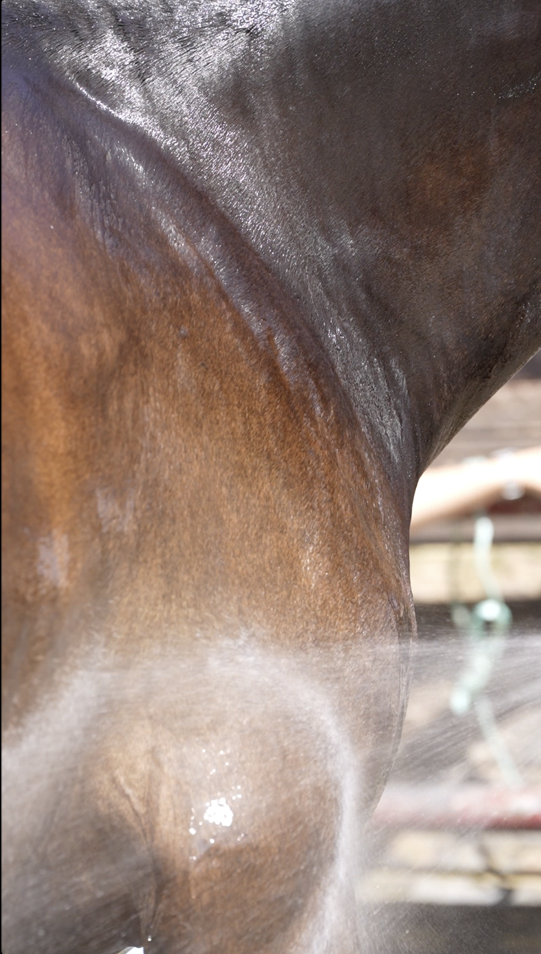 Le cheval transpire pour réguler sa température corporelle, mais contrairement à l’humain, sa sueur est très concentrée en électrolytes. Lorsqu’il fait chaud, même sans effort intense, un cheval peut perdre des litres de sueur.