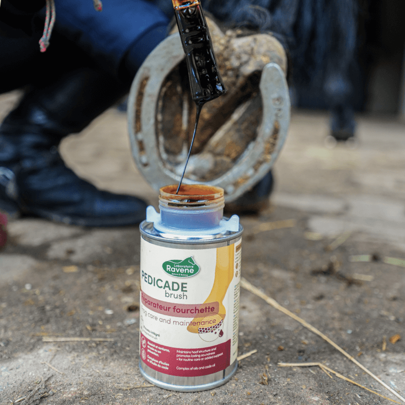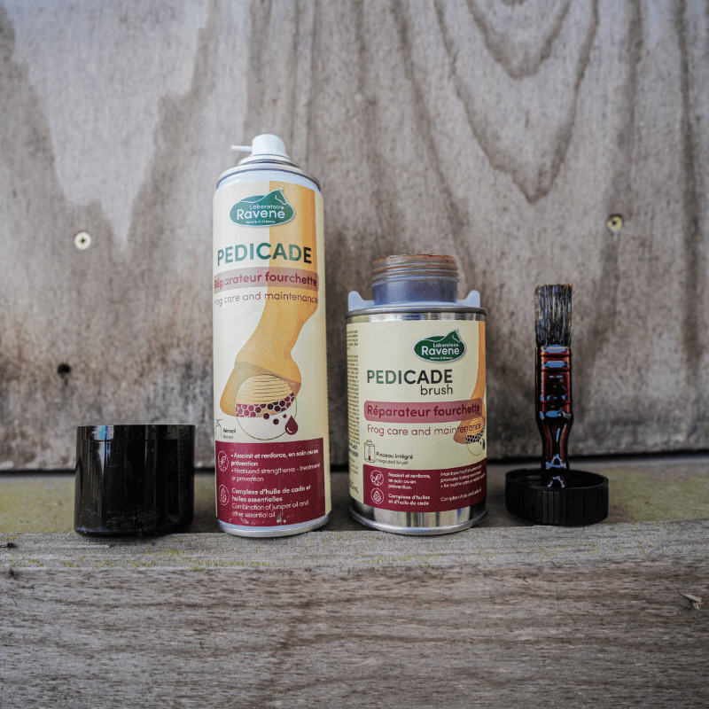 En cas de fourchettes altérées, molles et nauséabondes, appliquer PEDICADE brush tous les jours pendant une semaine, puis espacer les applications. En soin préventif, appliquer PEDICADE brush une fois par semaine sur les fourchettes pour conserver leur intégrité. À appliquer également sur les glomes.