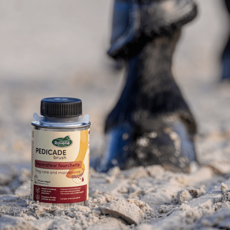 Les pieds de votre cheval sont soumis aux aléas de la météo et à la nature des terrains sur lesquels il évolue. En période humide, la corne peut se ramollir et être altérée. Il est alors indispensable d’agir rapidement ! PEDICADE brush assèche la fourchette et l’assainit. Elle est alors fortifiée, résistante et retrouve sa capacité d’amortisseur naturel.